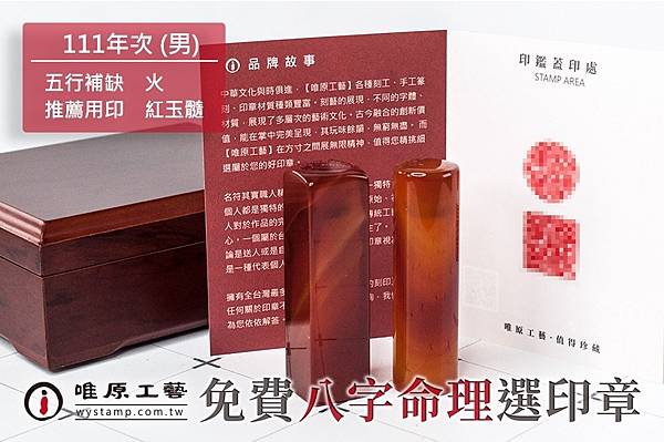 提供姓名、性別、出生年月日、出生時間,即可用八字五行選擇印章材質